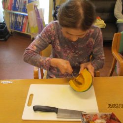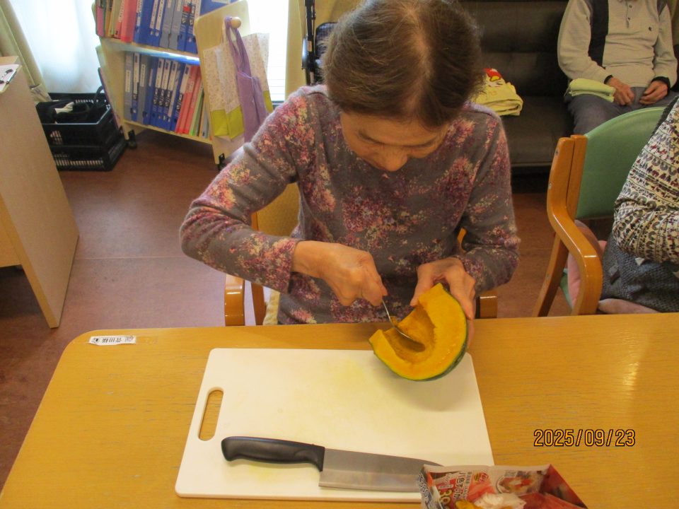 かぼちゃ、すごく固いですよね私たちでもカットに苦戦してしまうほどですが女性陣はいつも難なくカットされますよ