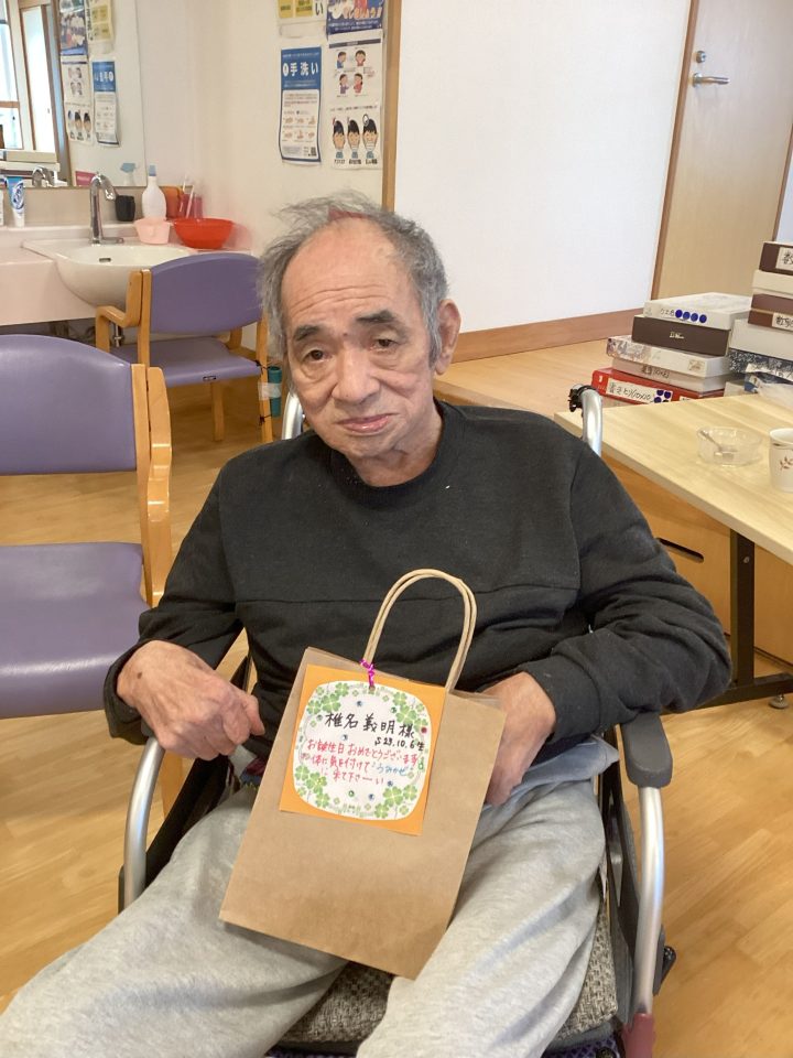 職員、利用者さんでハッピーバースデイを歌いプレゼントを渡しました![]()