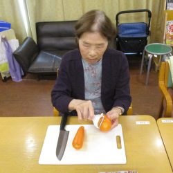 みなさん「私にできるかな…」と心配される声が多く聞かれましたが、包丁を持つと「これくらい?細かく切るよ!」「切るものどんどん持ってきてー!」と自信を持ってスムーズに野菜をカット