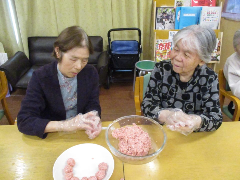 ミートボールを丸める作業も利用者様と一緒に行いました