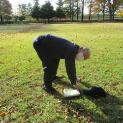 少し散歩をしてベンチで休憩していると…Aさんが、「ここ、ここ!」と自分の足を指差しています