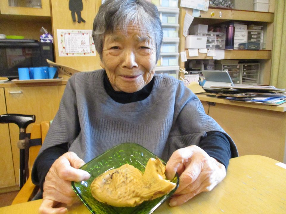 帰りには寄り道をして、おやつに「日本一のたい焼き」を買ってホームへ![]()