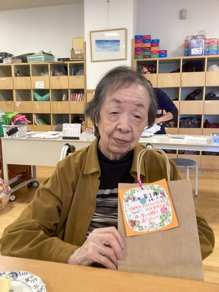 「何時に起きて何時に寝ていますか?」「長生きの秘訣はありますか?」などたくさんの質問をさせてもらい、「なんでも好き嫌いなく食べる事です」と話されていました