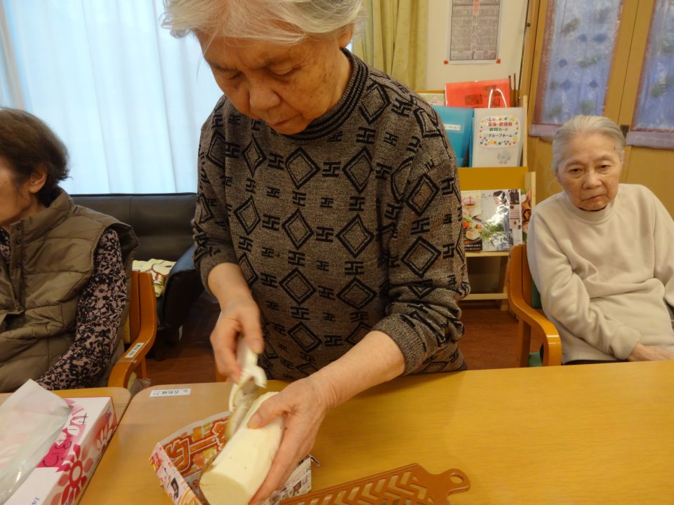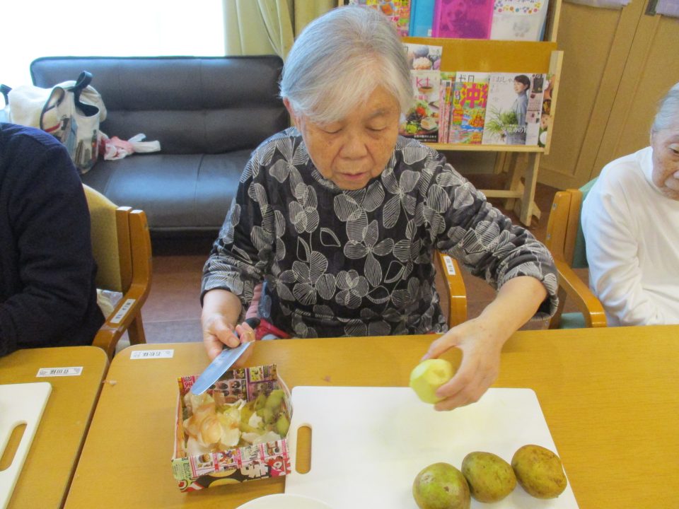 じゃがいも、人参、玉ねぎ、大豆の水煮缶、冷凍枝豆を使用野菜たちは先輩主婦チームにおまかせしますスルスルと皮むき、カットもちゃちゃっとお手のものです✨お豆の大きさに合わせて今日は小さめにカットしていただきましたよ