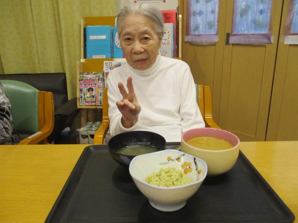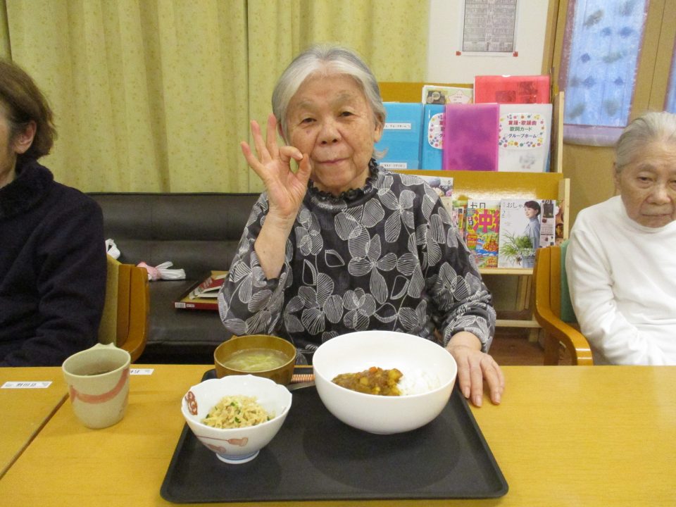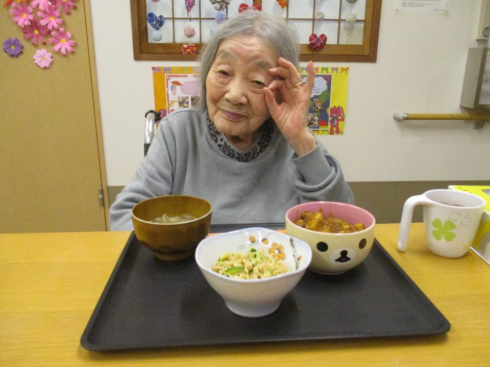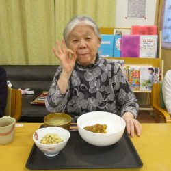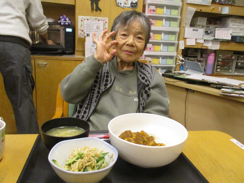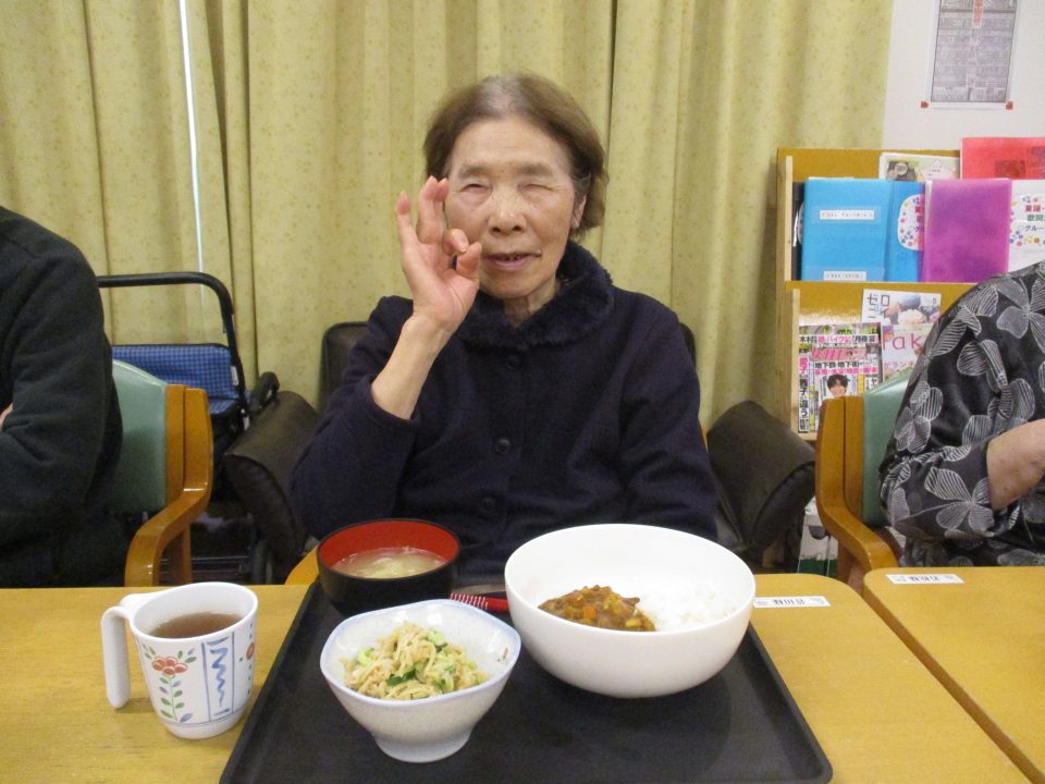 「豆が入ったカレーもいいわね」「珍しいね~!いつも肉入れとったわ」といろいろな声が聞こえてきましたそれでは美味しく召し上がれ♡