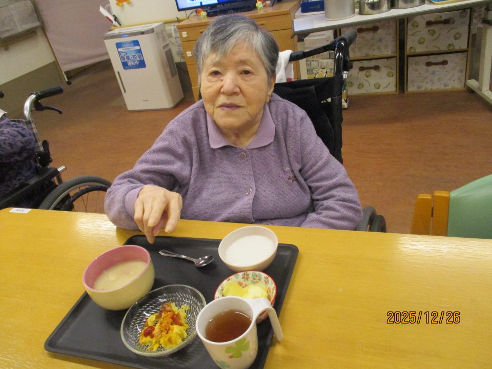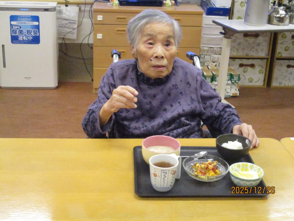 その様子に、まわりの利用者さんや職員も自然と笑顔になり、あたたかな食事の時間となりました♪