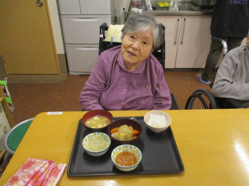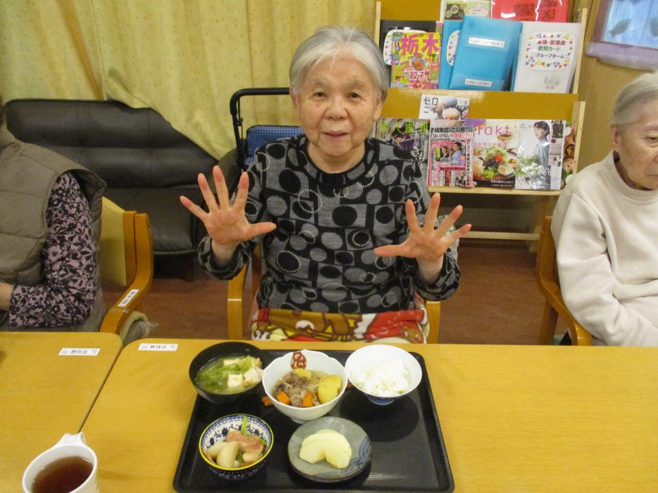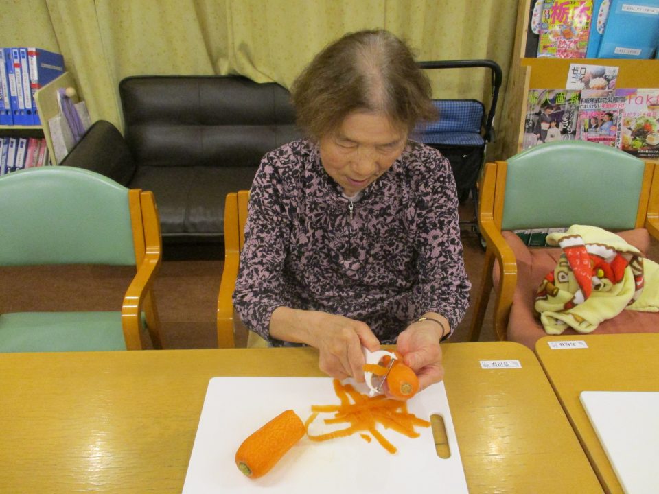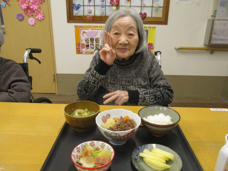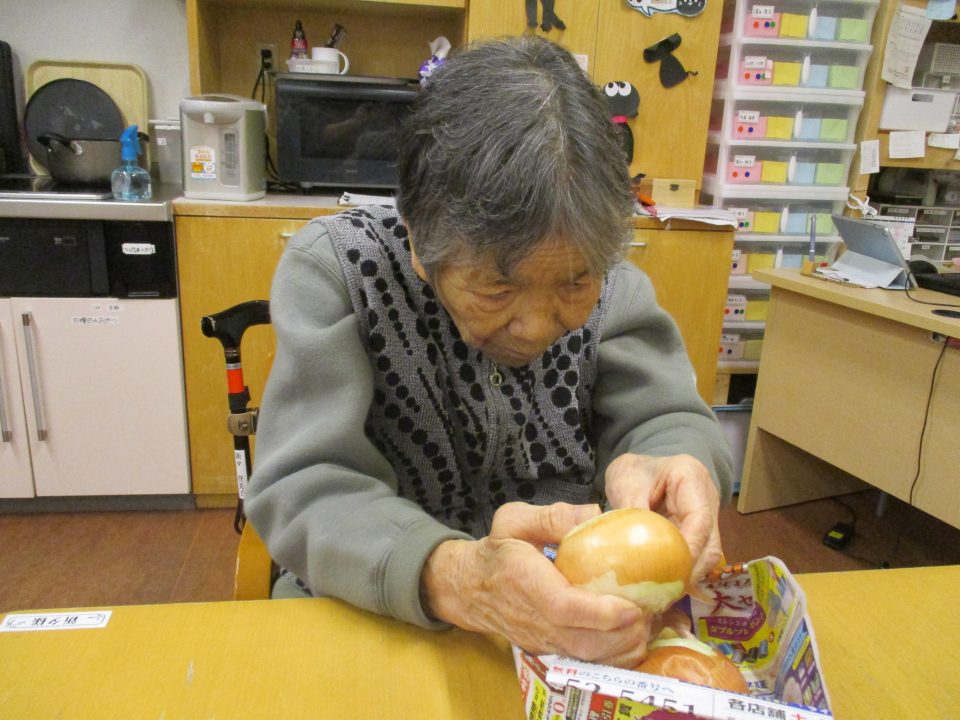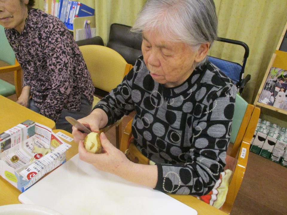 「今日のメニューは肉じゃがにしようかな~」職員が言ったら、「そうやね~、すぐできてお腹いっぱいになるからいいわね~」と返答!!今回はこれに決まりです!みんなで美味しくいただきましょう![]()