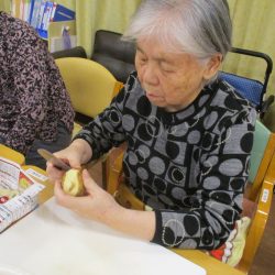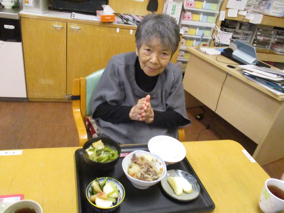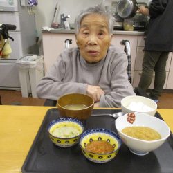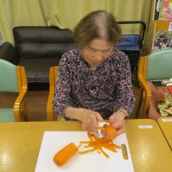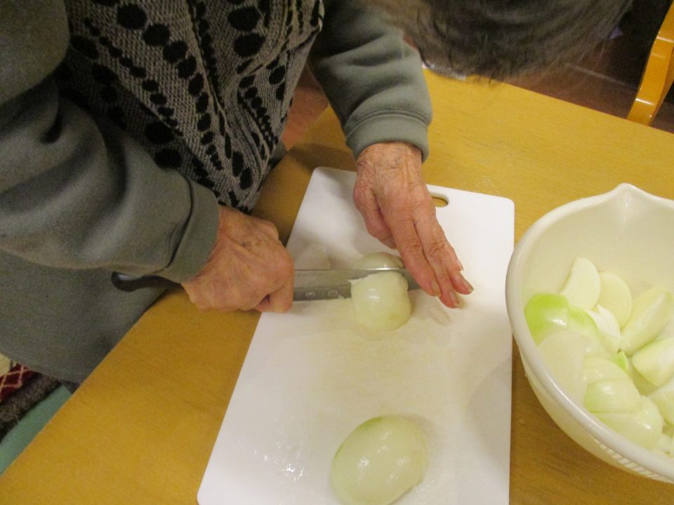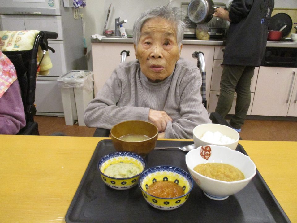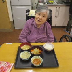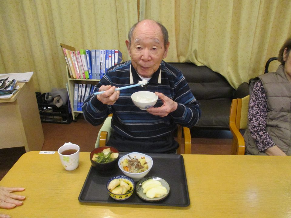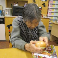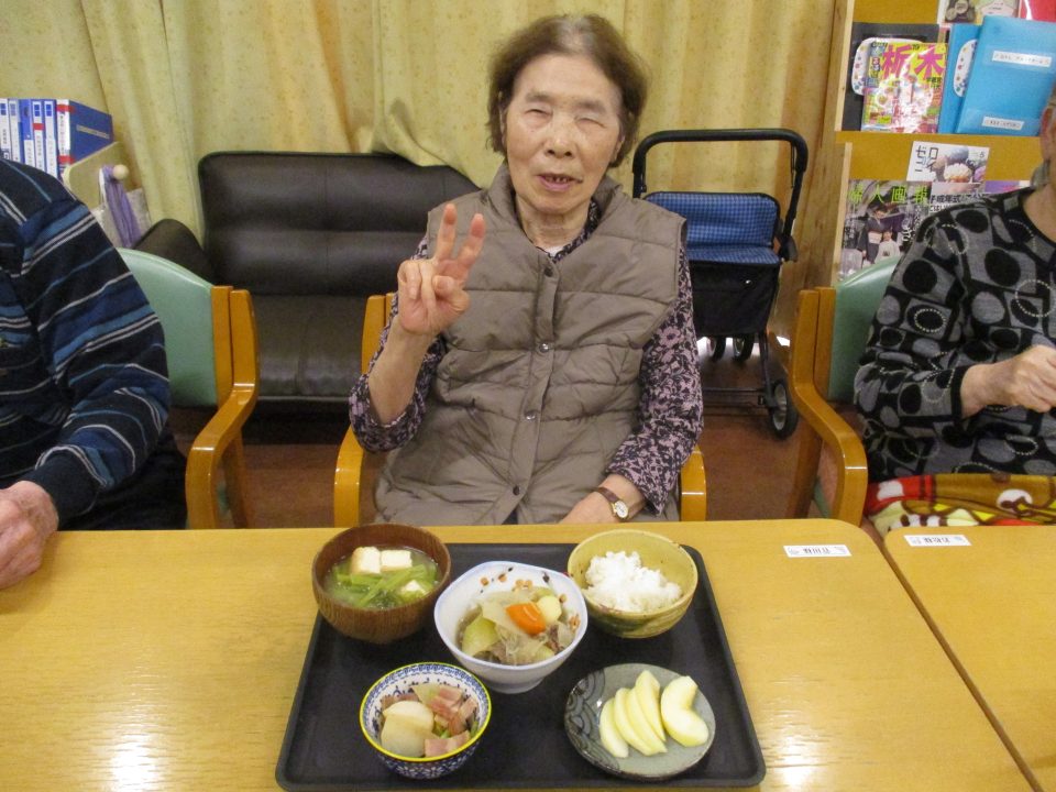 「今日のメニューは肉じゃがにしようかな~」職員が言ったら、「そうやね~、すぐできてお腹いっぱいになるからいいわね~」と返答!!今回はこれに決まりです!みんなで美味しくいただきましょう![]()