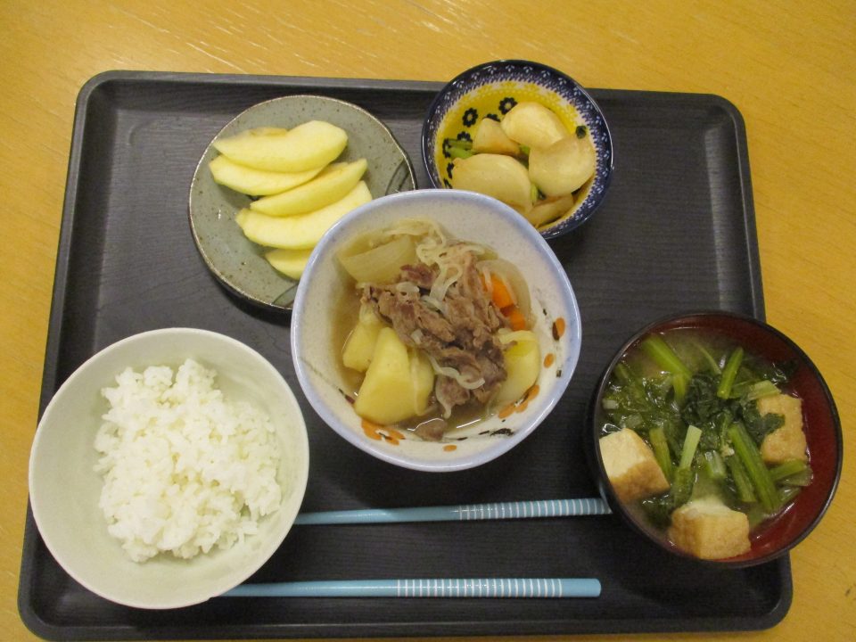 ・肉じゃが ・味噌汁(油揚げ、小松菜、ネギ)
