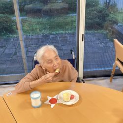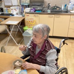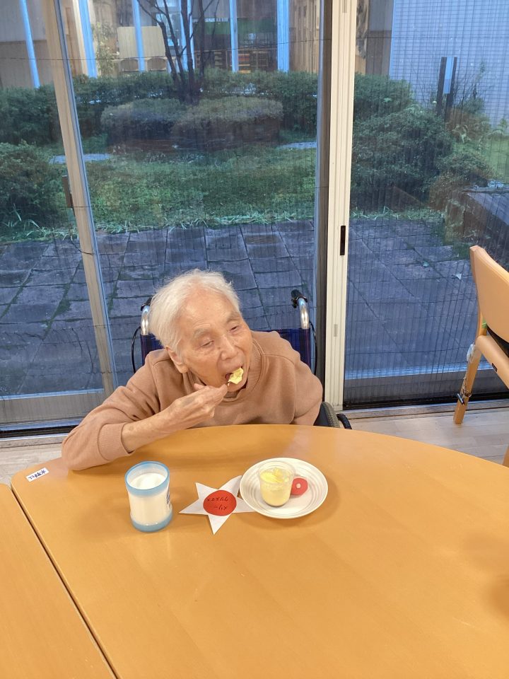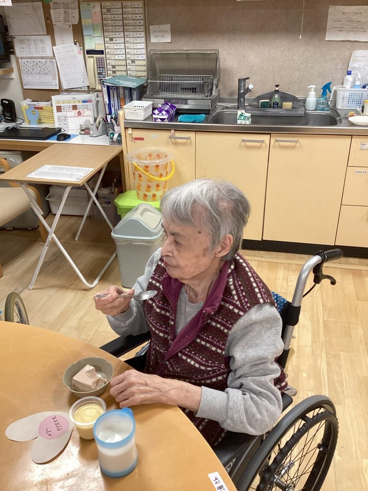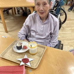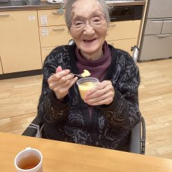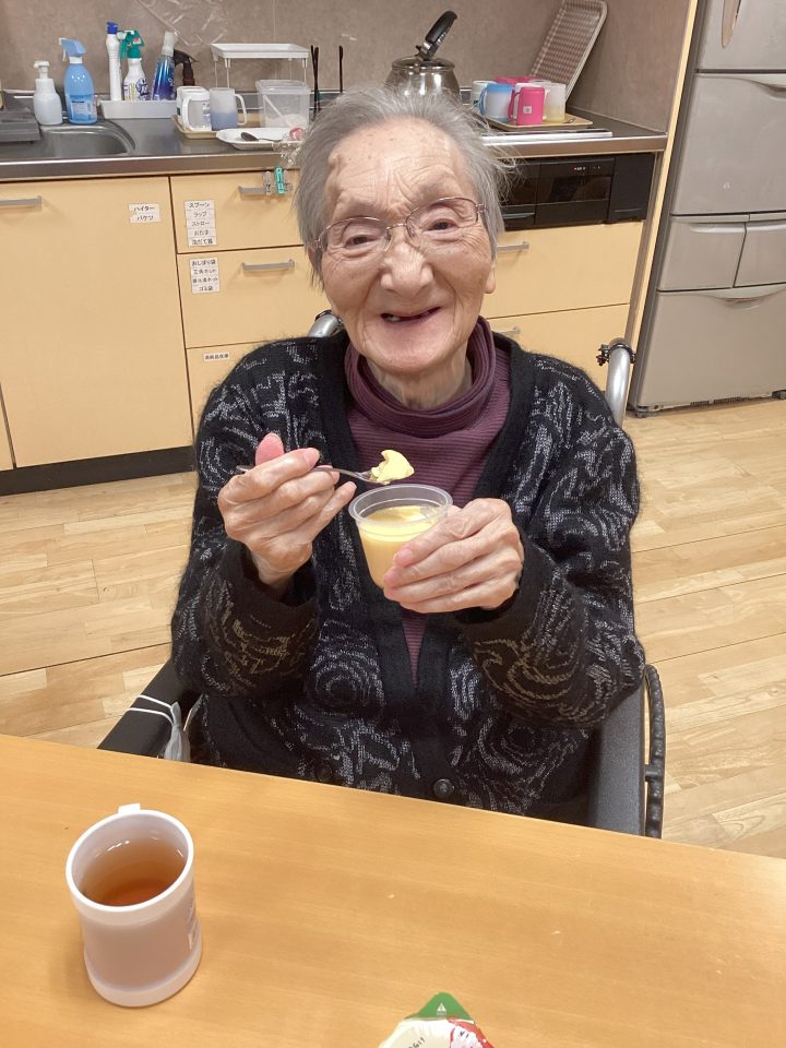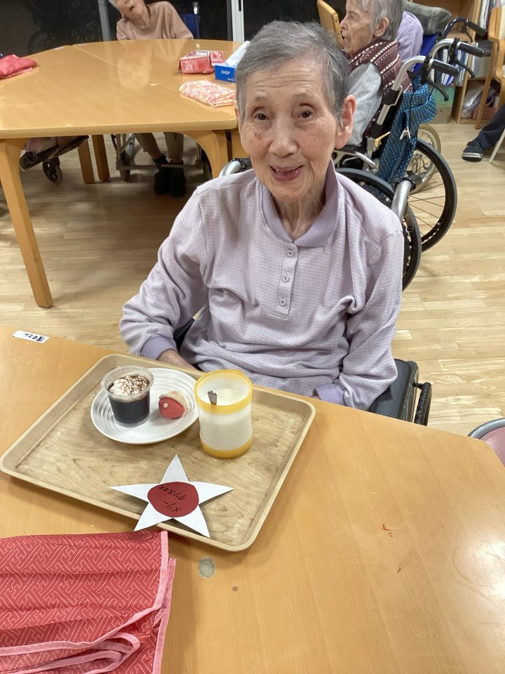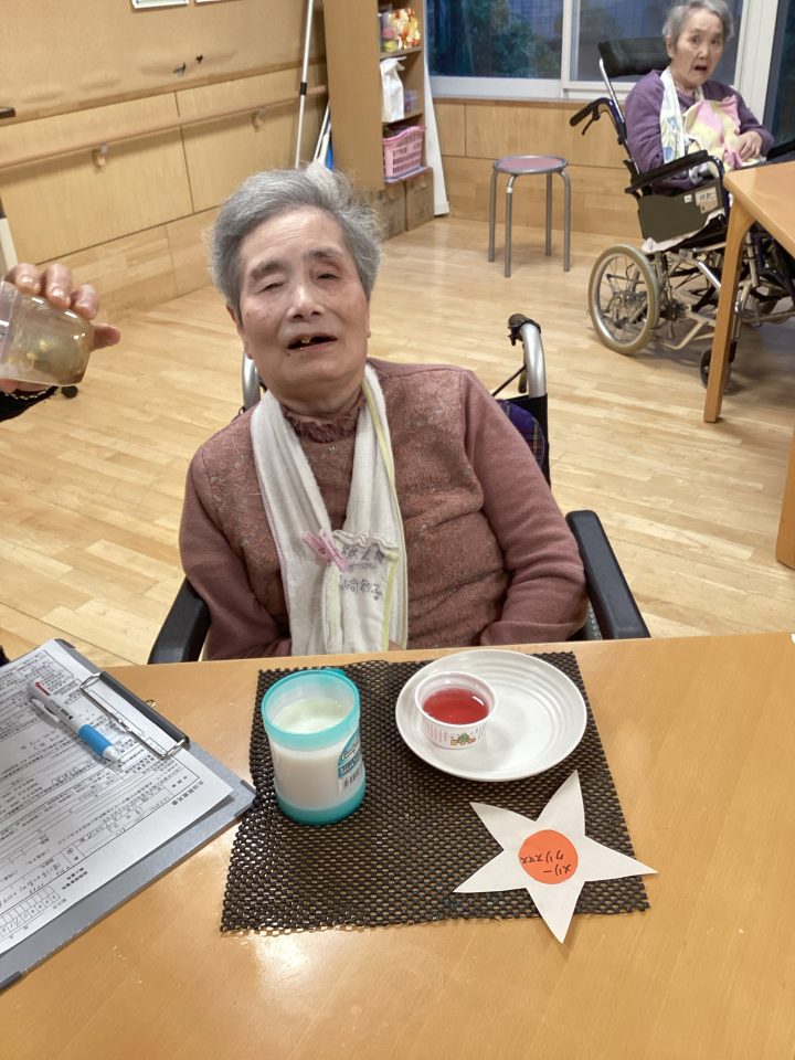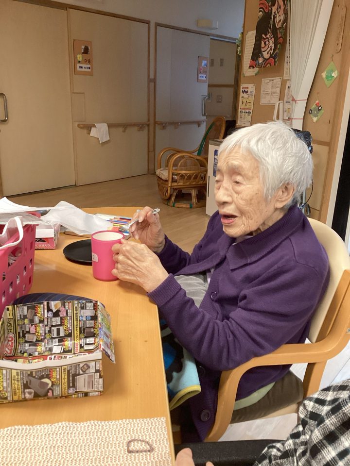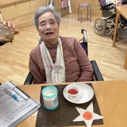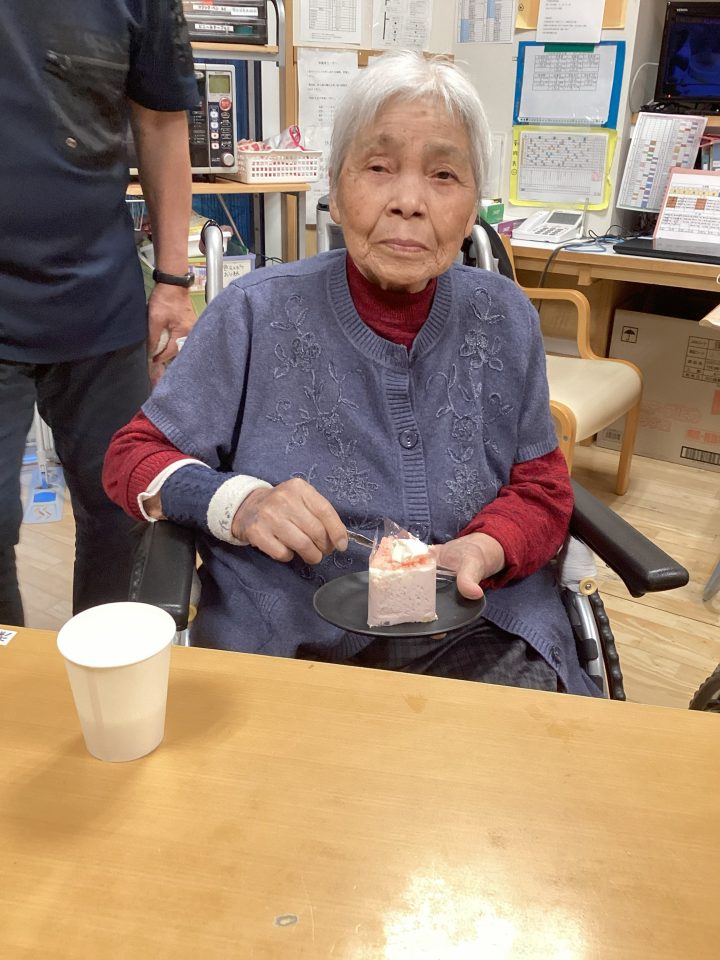クリスマスソングを歌ったり、輪投げゲームをしたりして楽しみました🎶輪投げゲームは点数が入るたびに盛り上がり、皆さん楽しく過ごされましたその後、ケーキやプリンを食べ、皆さん「おいしい」と喜んでくださりました