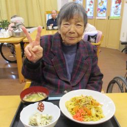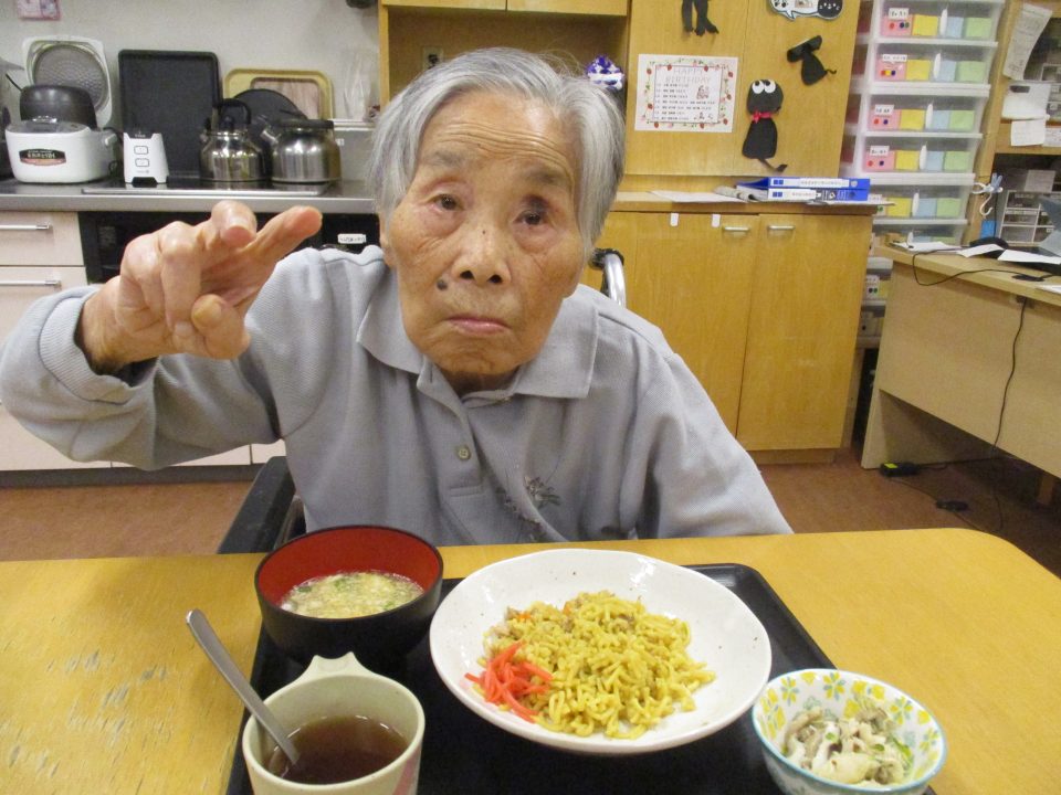 「今日は博多の味を楽しみましょう♪焼きラーメンですよ」の言葉に「初めて食べたわ、美味しいね」「博多の人らはこんな旨いもん食べとるんやのー」等、いろんな感想が聞けました😊