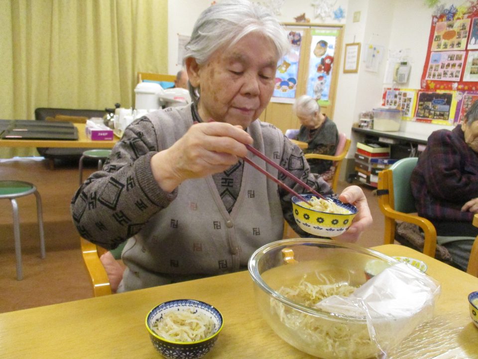 今回は切る野菜が登場しない分、お肉に粉をまぶしたり、お肉を焼いたり、もやしを和えたりするのを手伝っていただきました😁