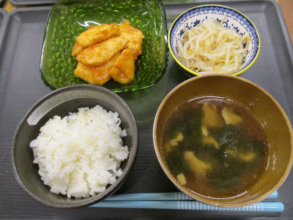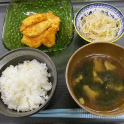 副菜には豆もやしのナムル、汁物には鶏皮とワカメのスープを添えて、韓国仕様の献立にしてみました✨