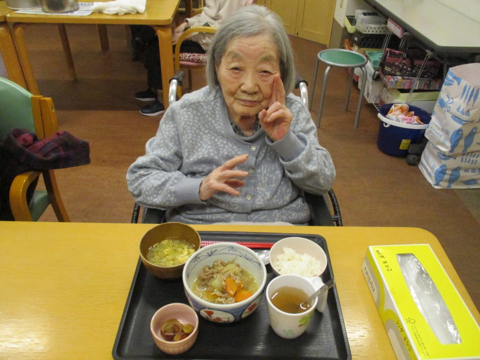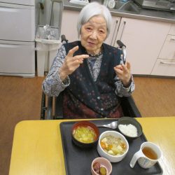 普段はなかなか食事が進まない利用者さんも、今日はいつもより大きな口で、