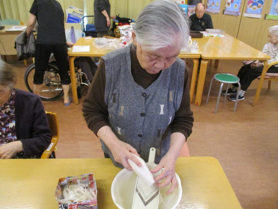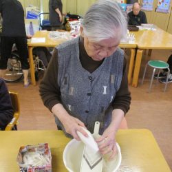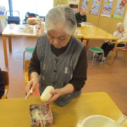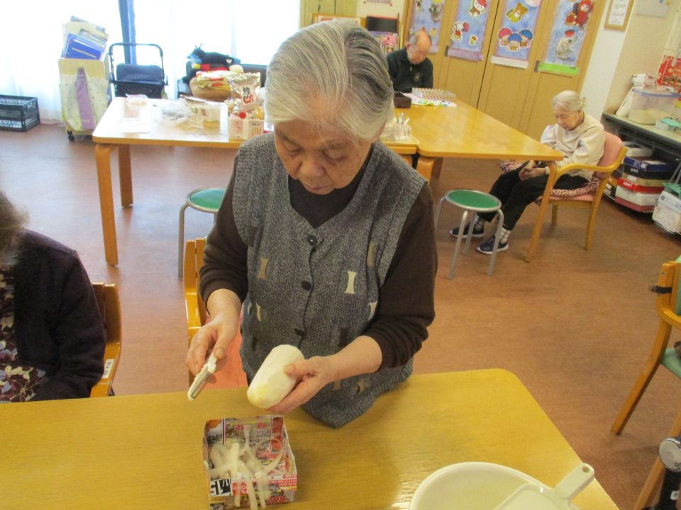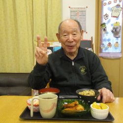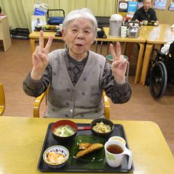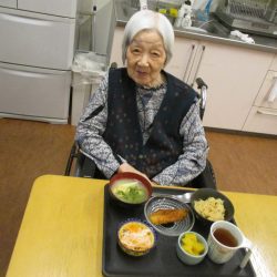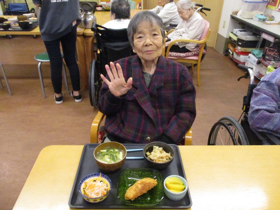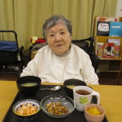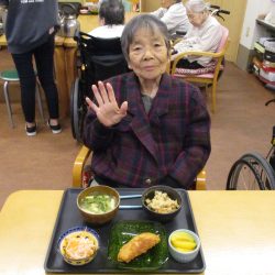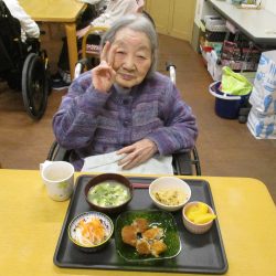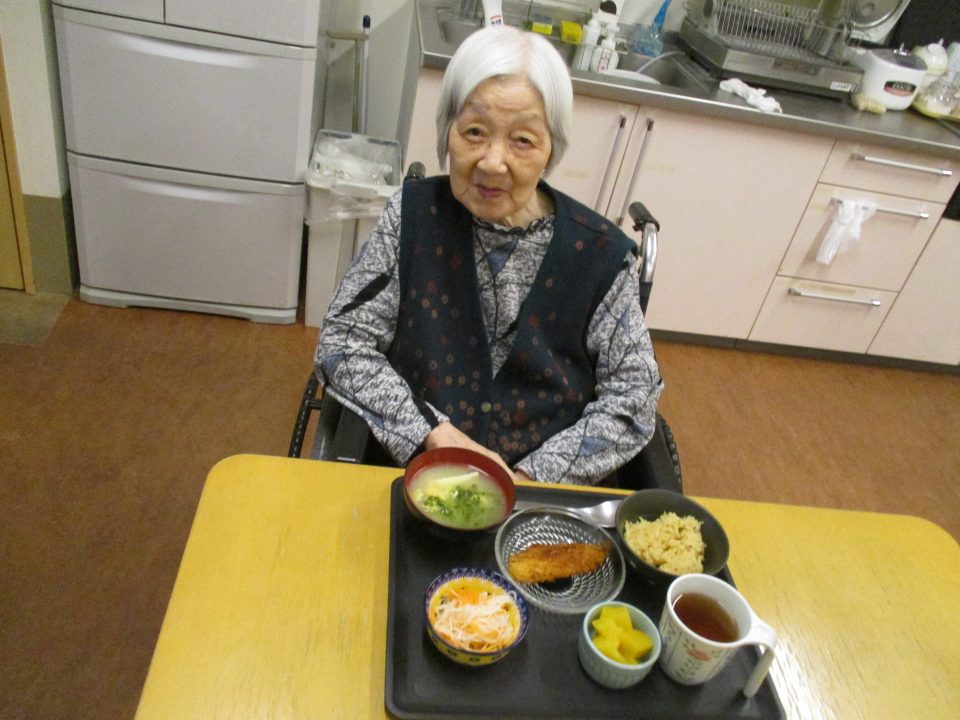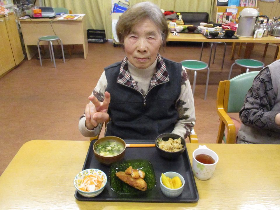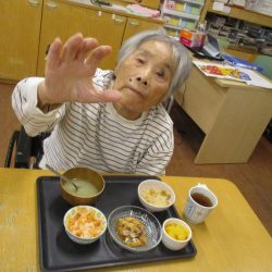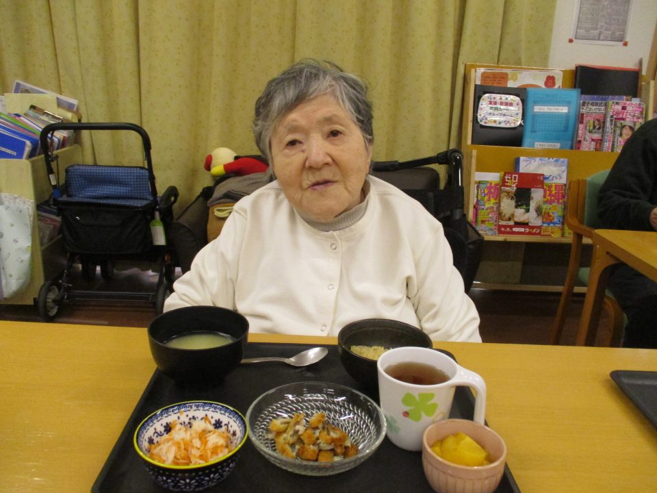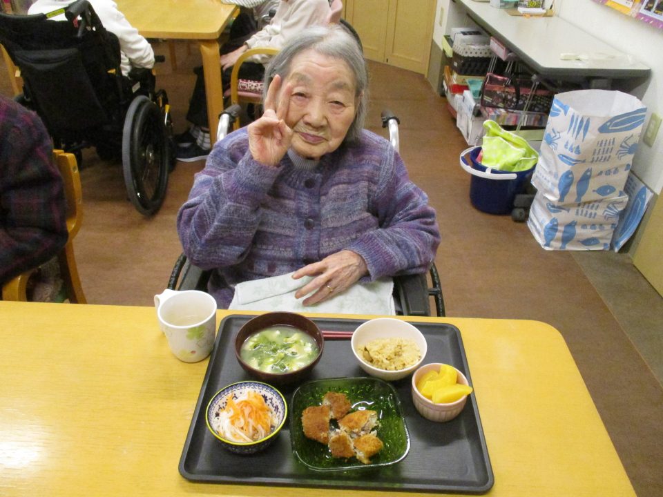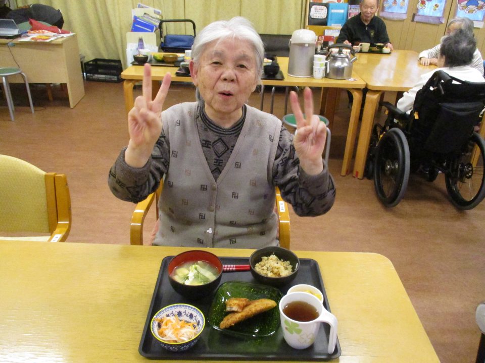 「鬼は外~、福は内~」私たちが子供の頃は四角い箱に炒り豆を入れてもらって部屋中にばらまいて、後からの掃除がとっても大変だったことを思い出します。きっと、入所している皆さんの若い頃にもお家で豆まきをして、毎年恒例行事だったのではないでしょうか?現代の鬼さんと福の神様は仲が良くて「福は内~、鬼も~内~」と「み~んなお家においで~👋」とご招待\(^o^)/豆や落花生の個包装をさらりと投げて、掃除もらくちん(≧▽≦)『年の数だけ豆を食べる』のは…利用者の皆さんにはちょっと酷かな(-_-;)なかなか量は食べられないだろうから、今回は豆ごはんにしましたよ。茶碗に年の数だけの豆は入れてないけれど、“豆“を食べて無病息災・健康長寿をお祈りしました!きっと皆さん、一層お元気で、イキイキ息災に過ごされることでしょう。楽しい毎日を過ごしましょうね💕⭐