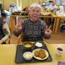 ホットプレートで焼いていると「あれ~美味しそうやね~」「お腹空いたね☺」と、美味しそうな匂い♡につられて、焼いているハンバーグを見に来られる利用者様が何人かおられましたよ🤭