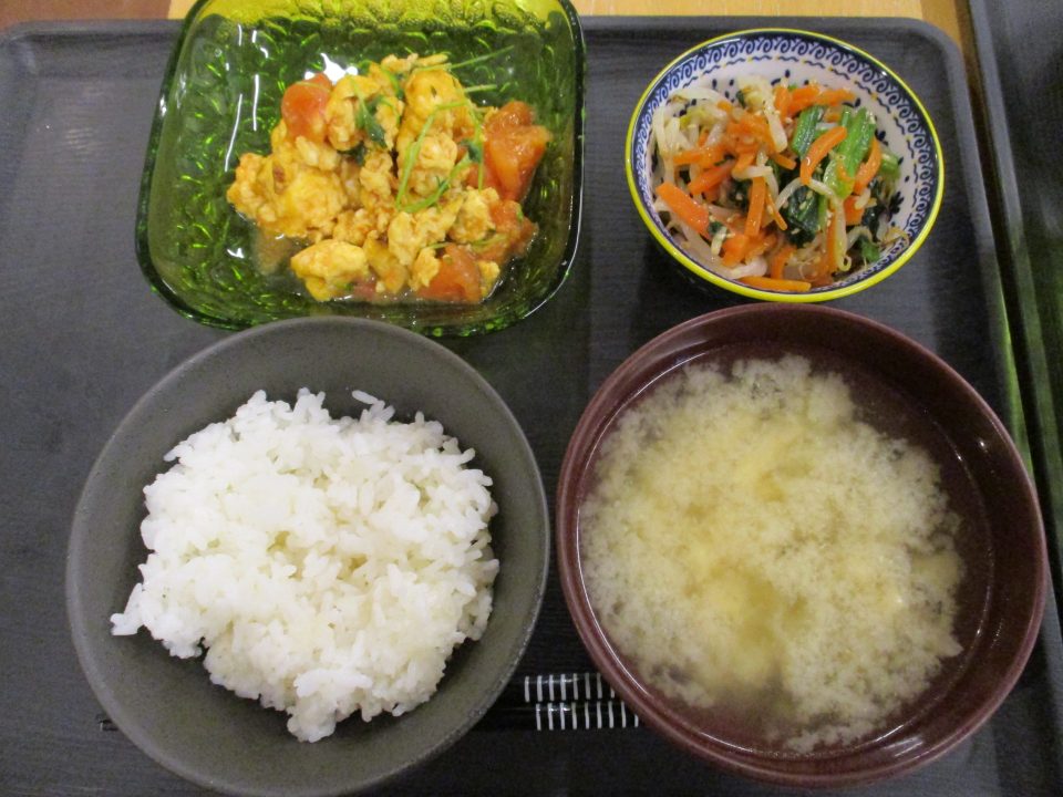 主菜は黄色と赤が映える、トマトと卵の中華炒めです🍅