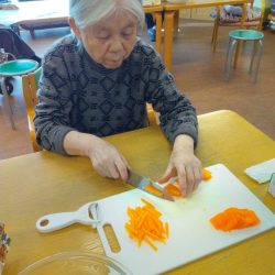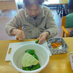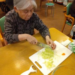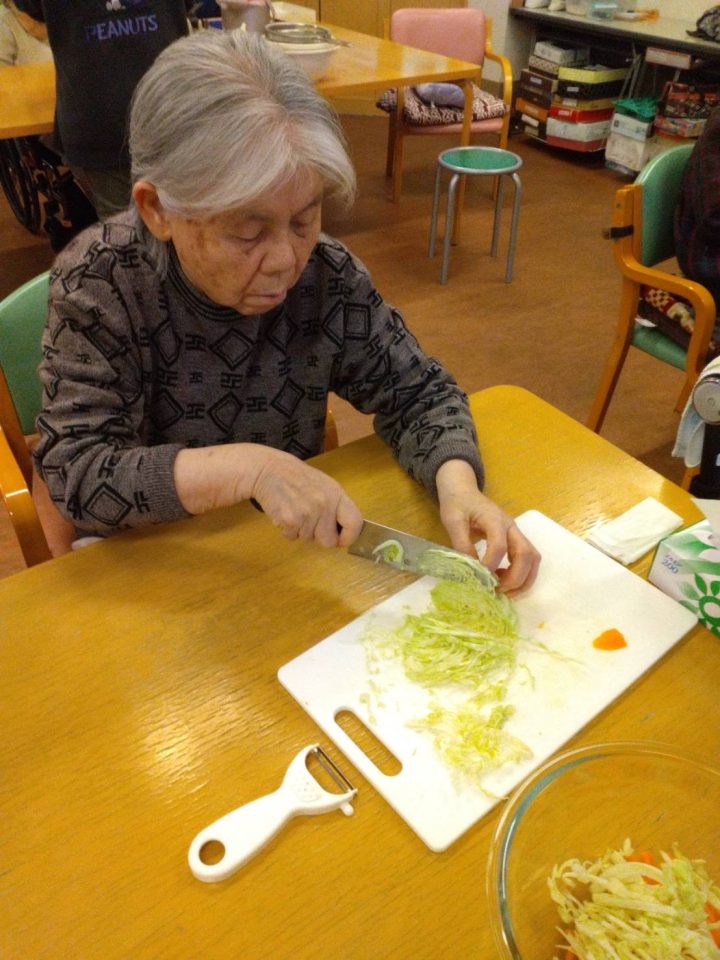 “この寒い冬を乗り切るために”入所している皆さんの好みの食材や冷蔵庫の食材を組み合わせてお腹にもお財布にも優しい献立にしてみました。