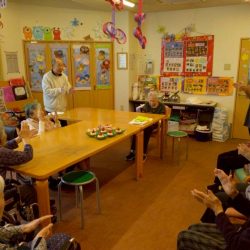 ケーキが出来上がる頃、フロアに来られたAさんに今から誕生会をすることを伝えると、大変喜ばれ、感慨深いご様子です😊