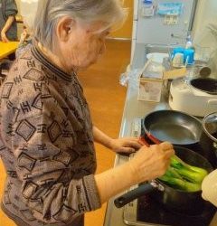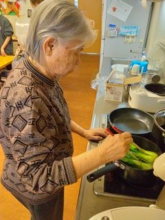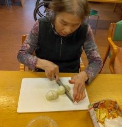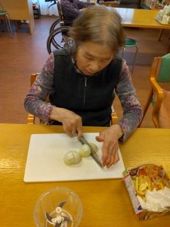 いつもはお手伝いの様子を見ていることが多いAさんも、今日はブンブンチョッパーで玉ねぎのみじん切りを作ってくださいました!