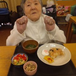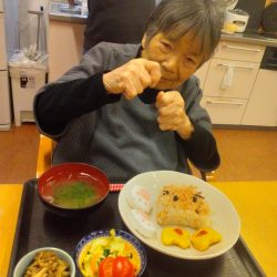 出来上がったプレートを見せると「わあ、なんて可愛いが♡」「器用に作るね!」と利用者様もニッコニコ☺️ミキサー食は白猫さんに仕上げました😸