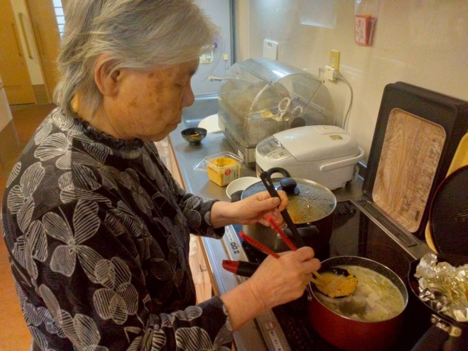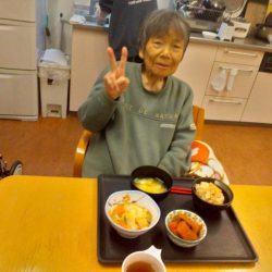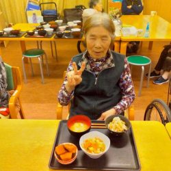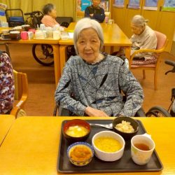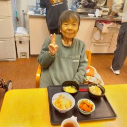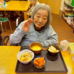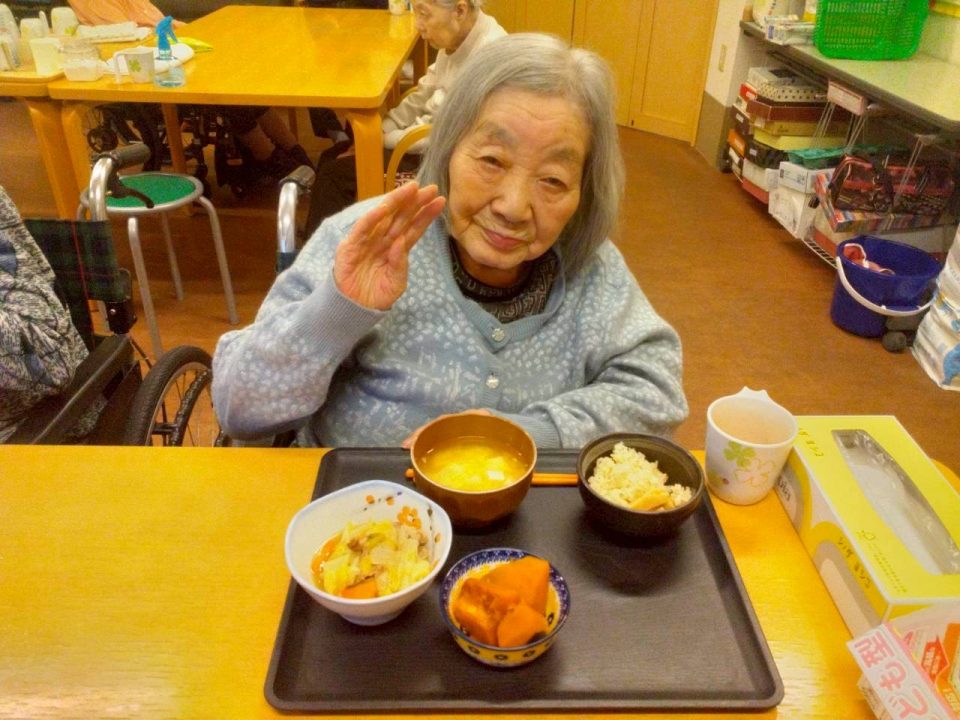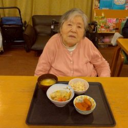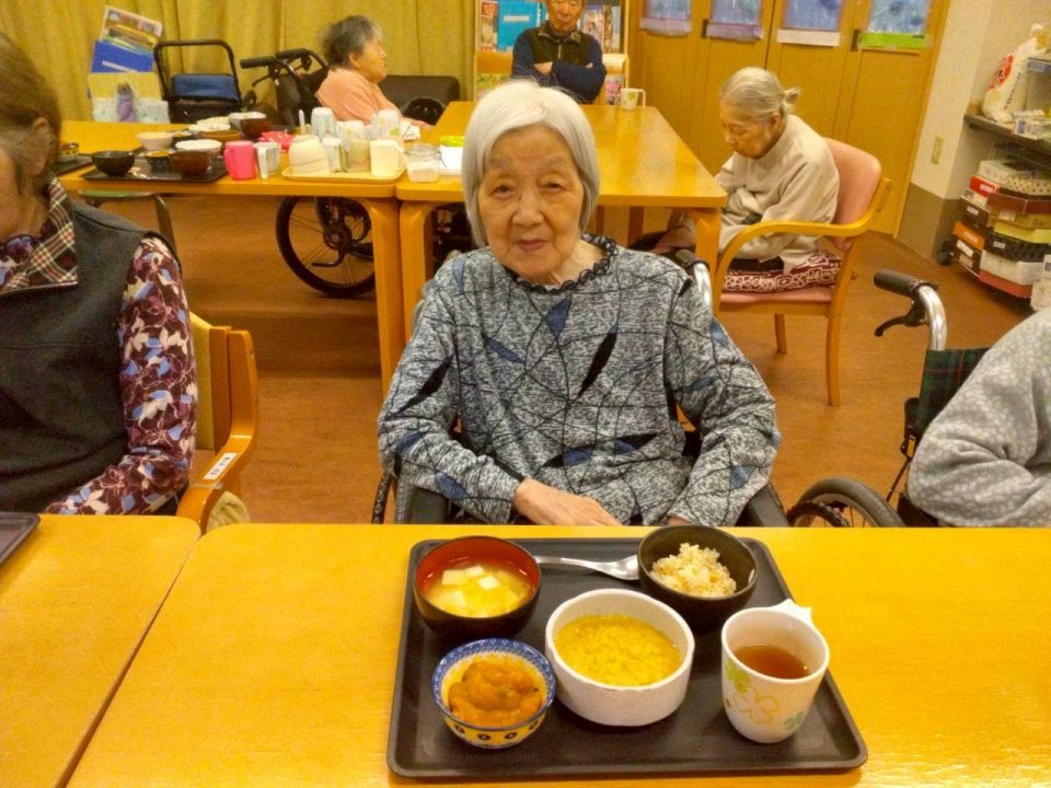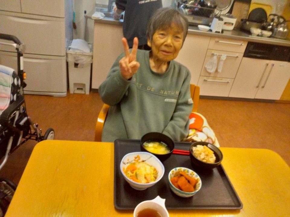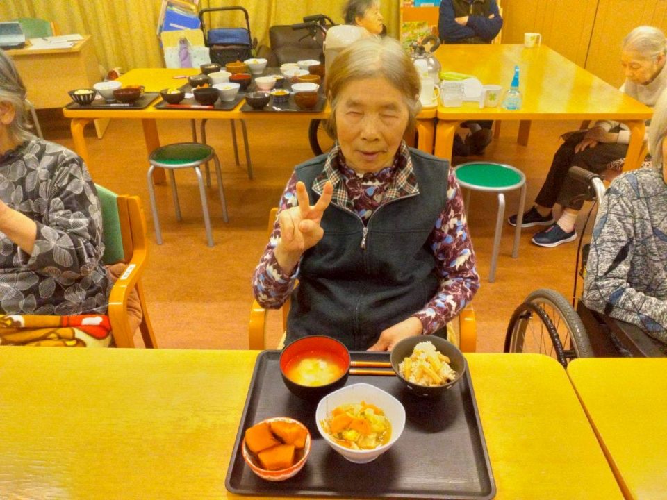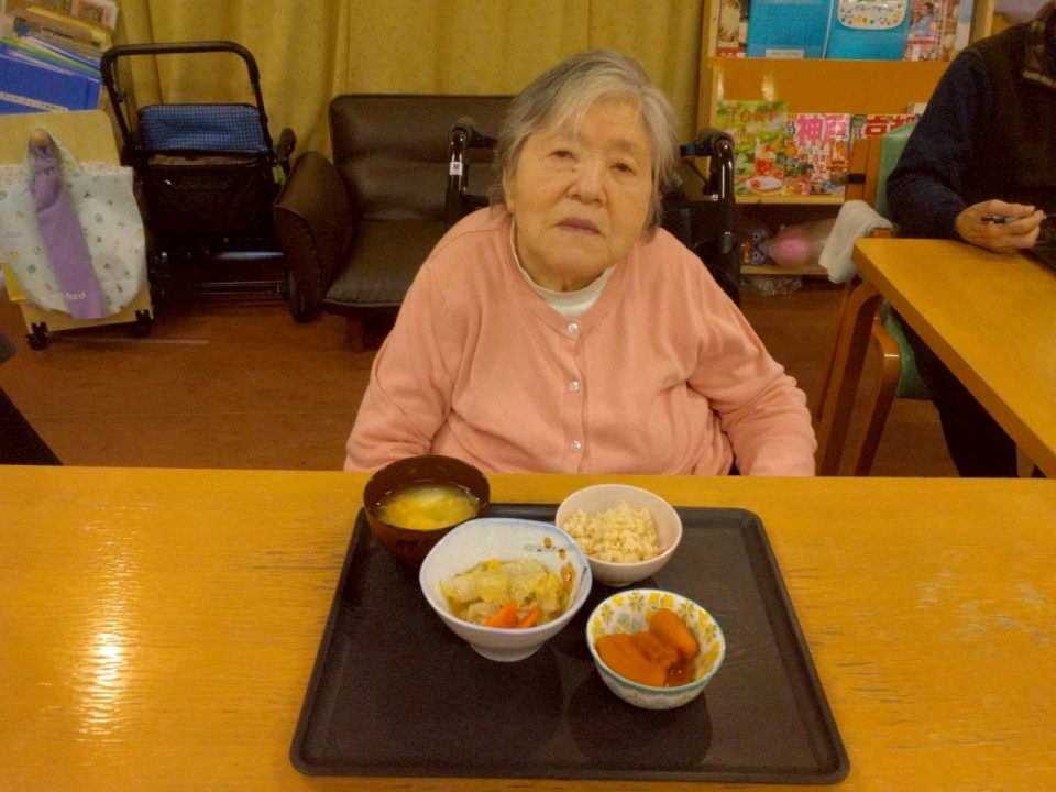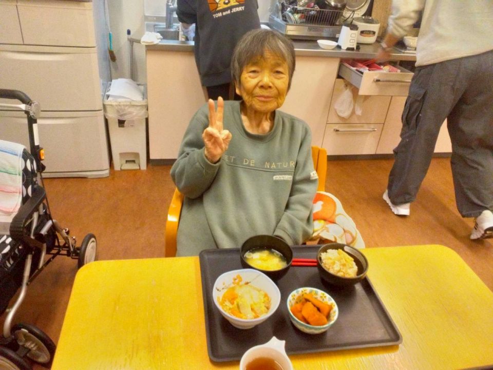 白菜のとろとろ、カボチャのホクホク、豆腐と卵のおつゆで食べやすい献立になりましたね。満足顔をパシャリ📸✌(●^o^●)