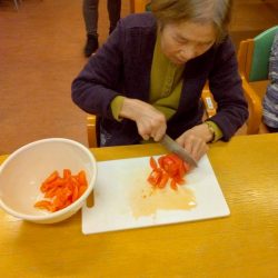 お肉を休ませている間にAさん、Bさん、Cさんで野菜の皮むき・カットをしていきますよ🔪