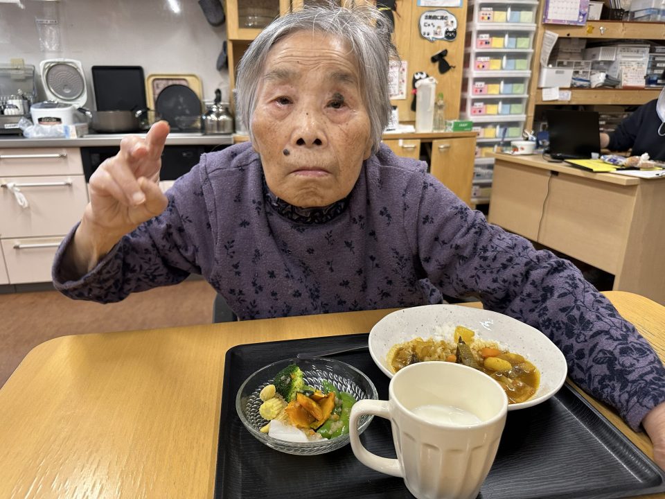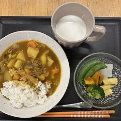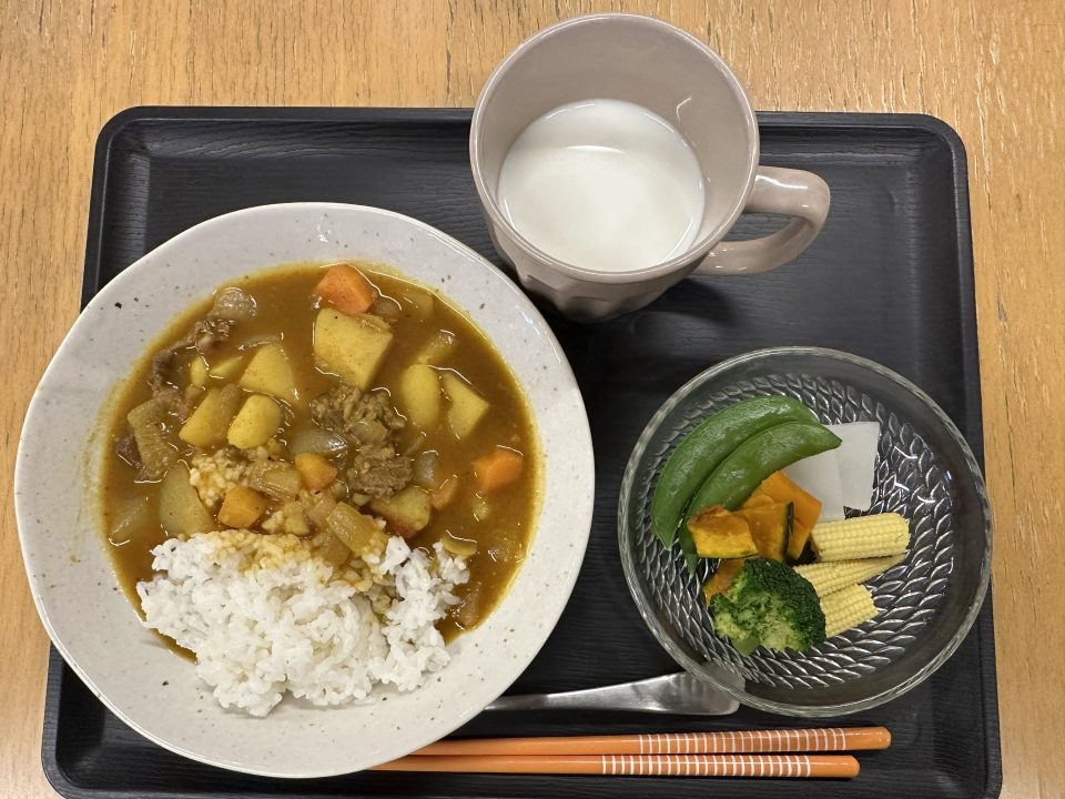 温野菜サラダと牛乳をつけて、はい、出来上がり🤤
