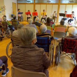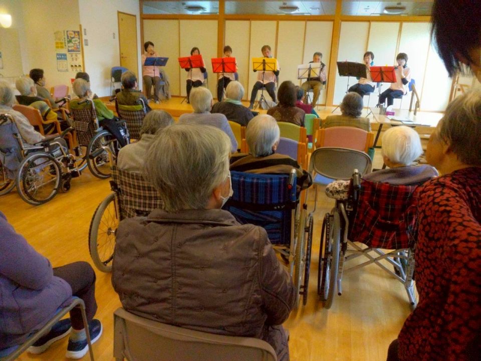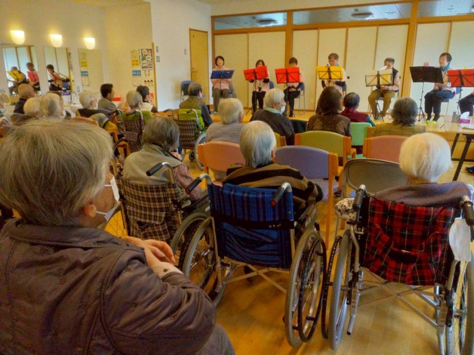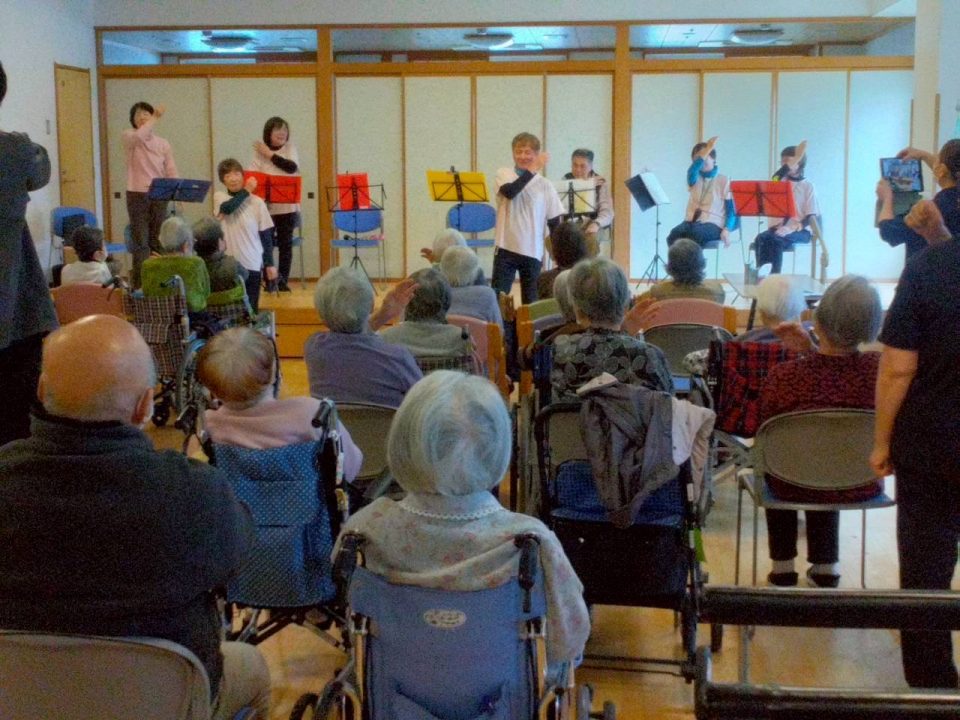 演奏会が始まると、どこか懐かしい曲が次々と披露され、利用者のみなさんも自然と耳を傾けていました😀