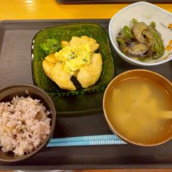 メインのチキン南蛮は、鶏むね肉を使用した甘酢マヨ焼き!