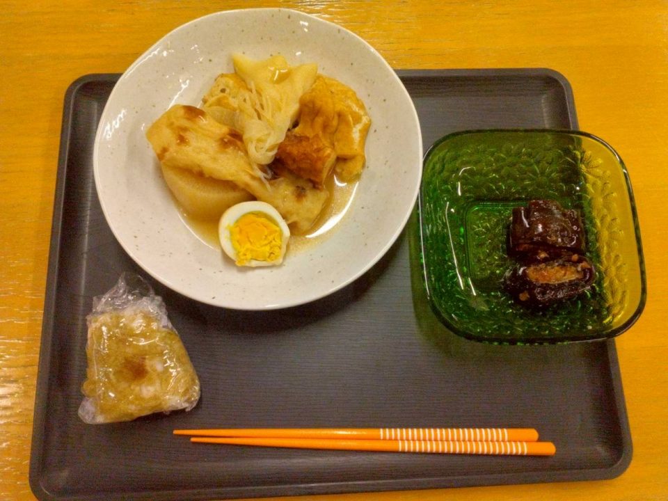 ・おでん(大根、糸こんにゃく、厚揚げ、はんぺん、かまぼこ、ちくわ、玉子など)