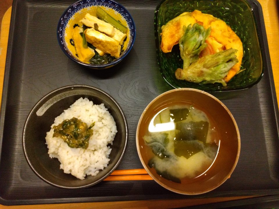 ・小松菜と厚揚げの煮浸し ・新じゃがいもの味噌汁